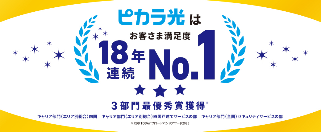 - 「キャリア部門 (自宅Wi-Fiの回線スピード満足度)四国」で第1位を受賞